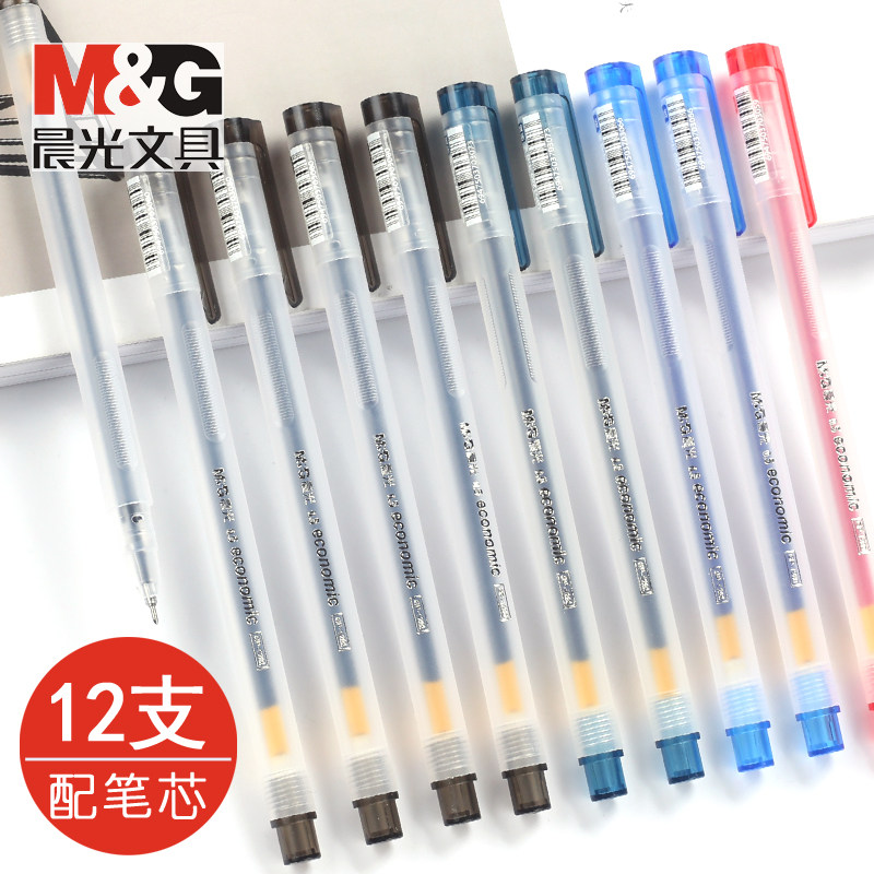 晨光GP1280简约中性笔拔盖黑色笔学生用0.5mm针管中性笔ins冷淡风红蓝黑色笔芯水笔商务办公水笔文具用品批发