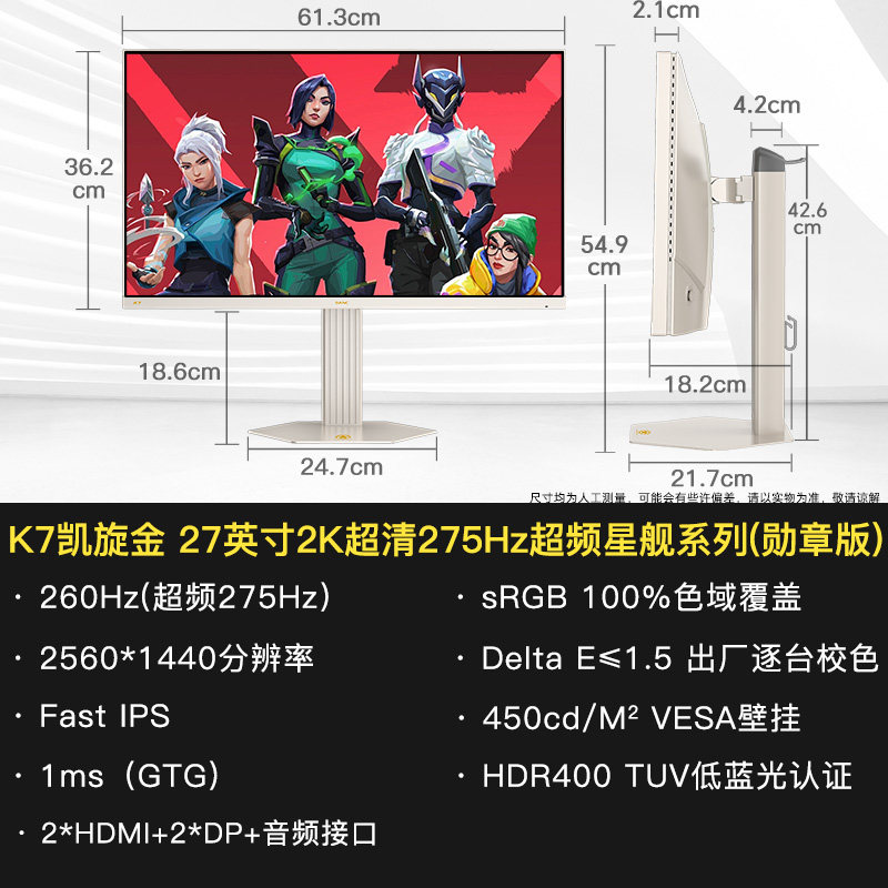 SANC盛色 27英寸2K高清275Hz电竞显示器硬件低蓝光电脑游戏屏幕K7
