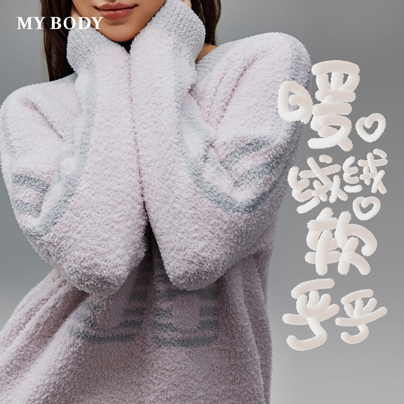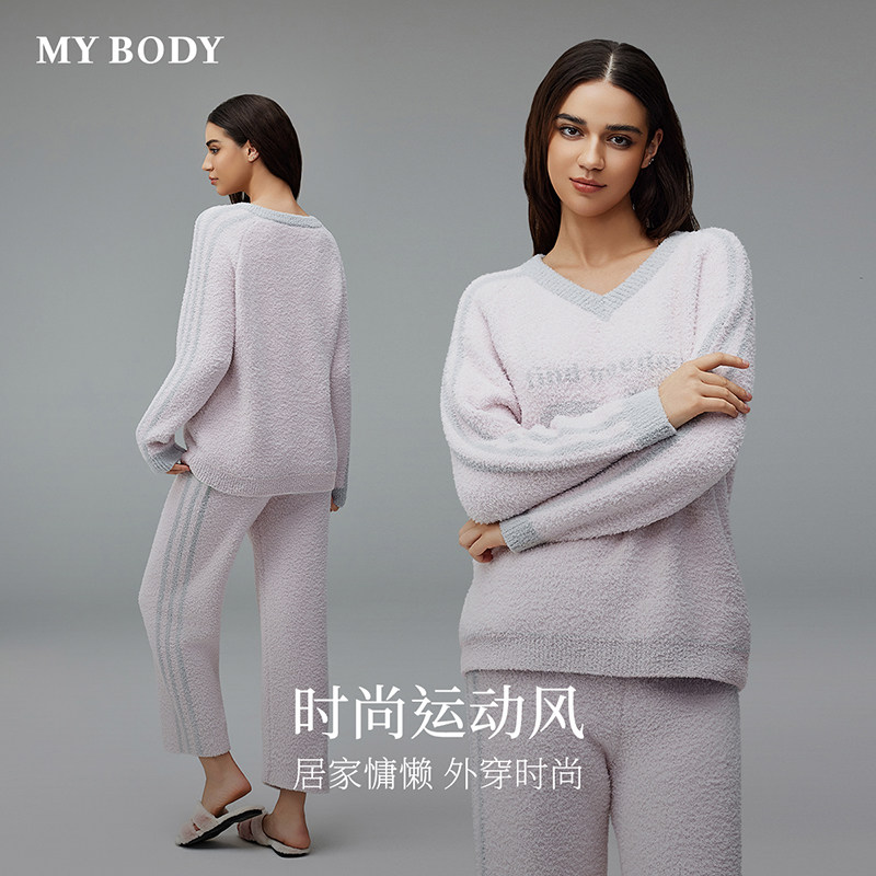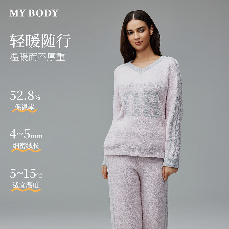 MYBODY商场同款春季新款睡衣女款时尚撞色轻软半边绒可外穿家居服
