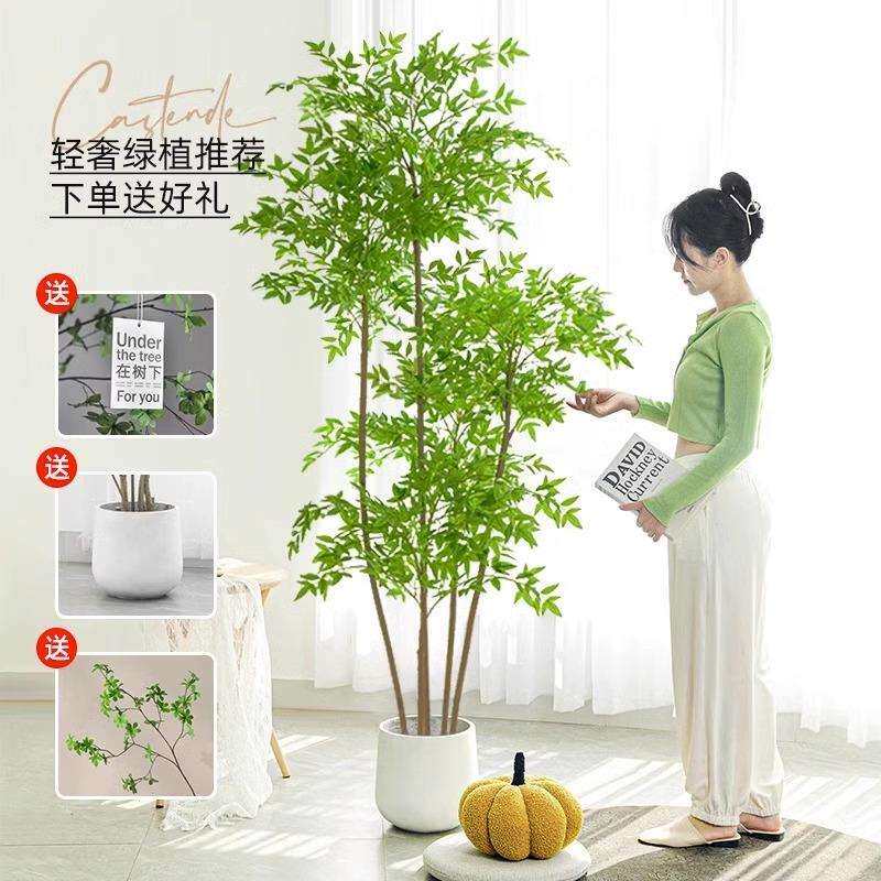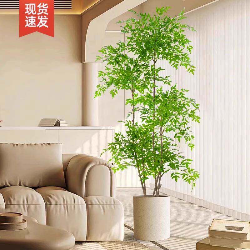 南天竹仿真绿植室内大型盆栽高端轻奢假花树客厅仿生植物落地摆件