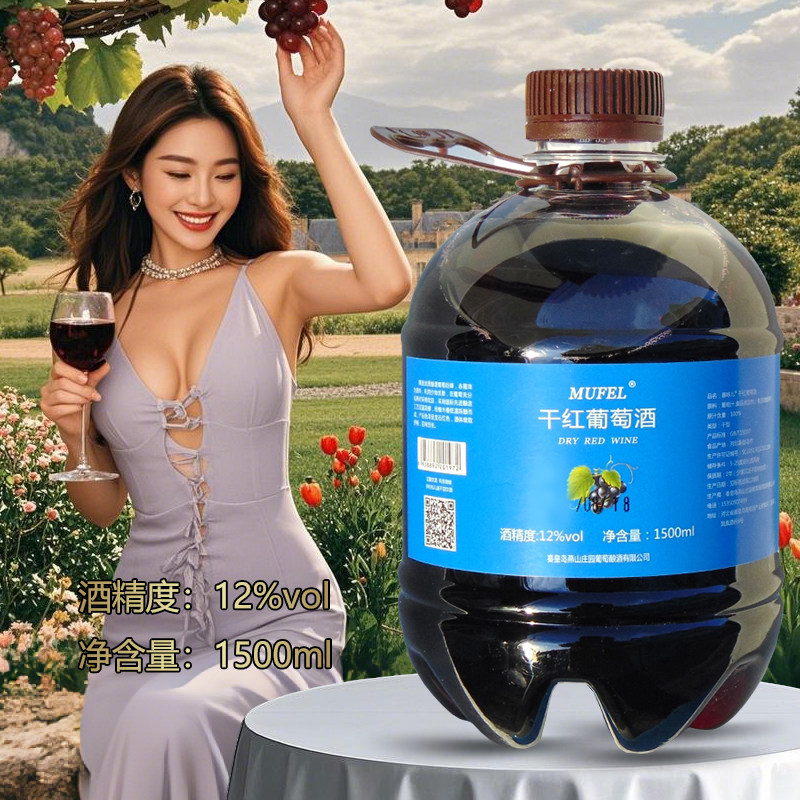 1.5L桶装甜红甜白干红葡萄酒非农家自酿水果酒半甜甜型白葡萄传统