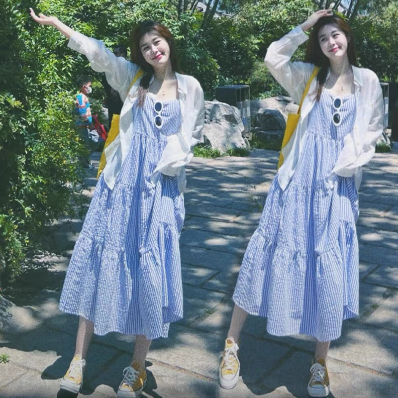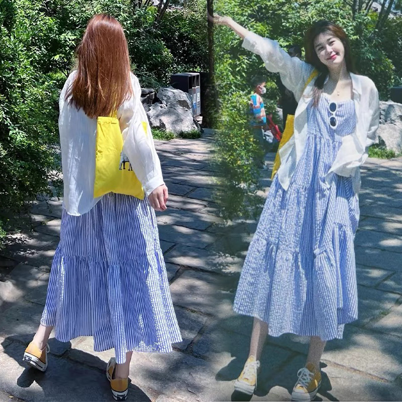 婧麒孕妇装连衣裙夏季2025款吊带裙子防晒衬衫孕妈高级穿搭套装女