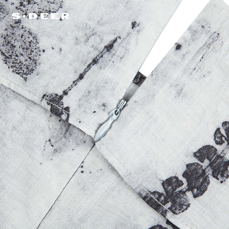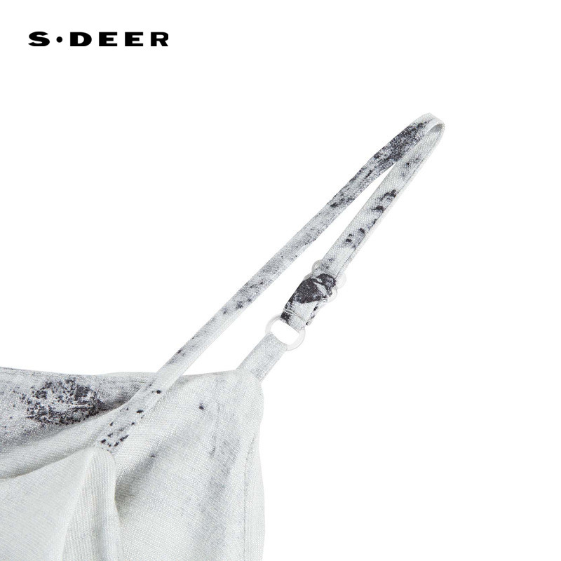 sdeer圣迪奥女装复古印花针织短袖吊带裙套装S242Z1447
