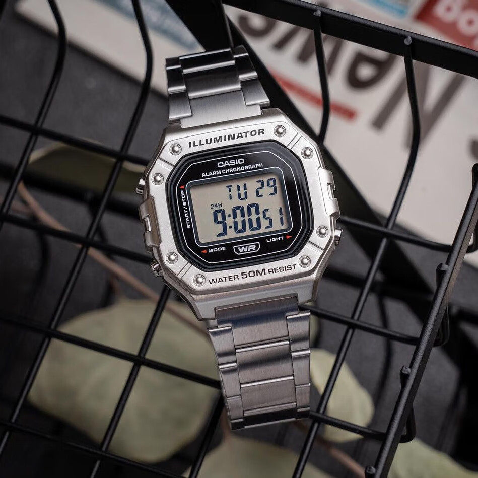 Casio卡西欧小方块手表运动防水多功能学生手表W-218H-1B