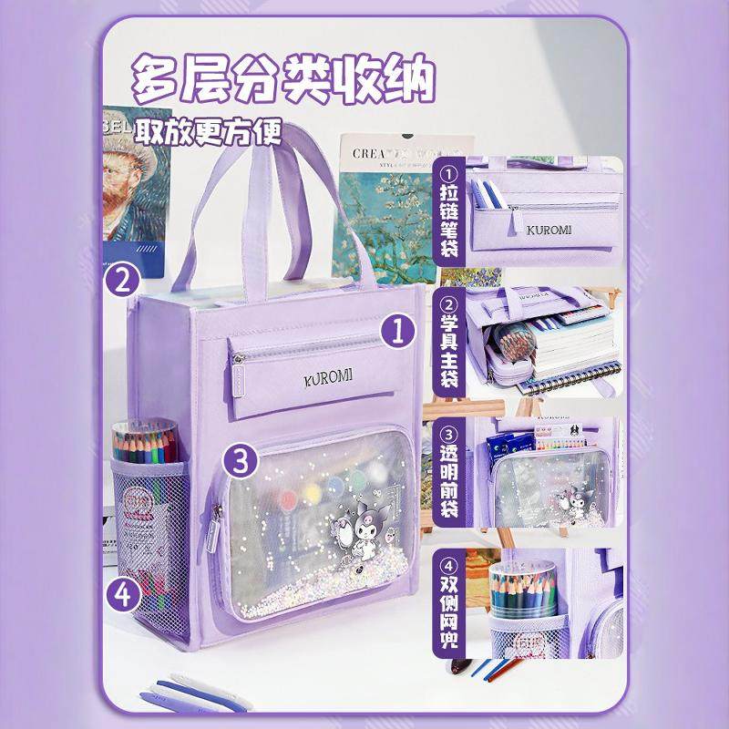 三丽鸥库洛米美术袋补习袋小学生手提袋一年级专用美术用品收纳袋美术课材料学具袋女孩帆布补课包书包工具袋