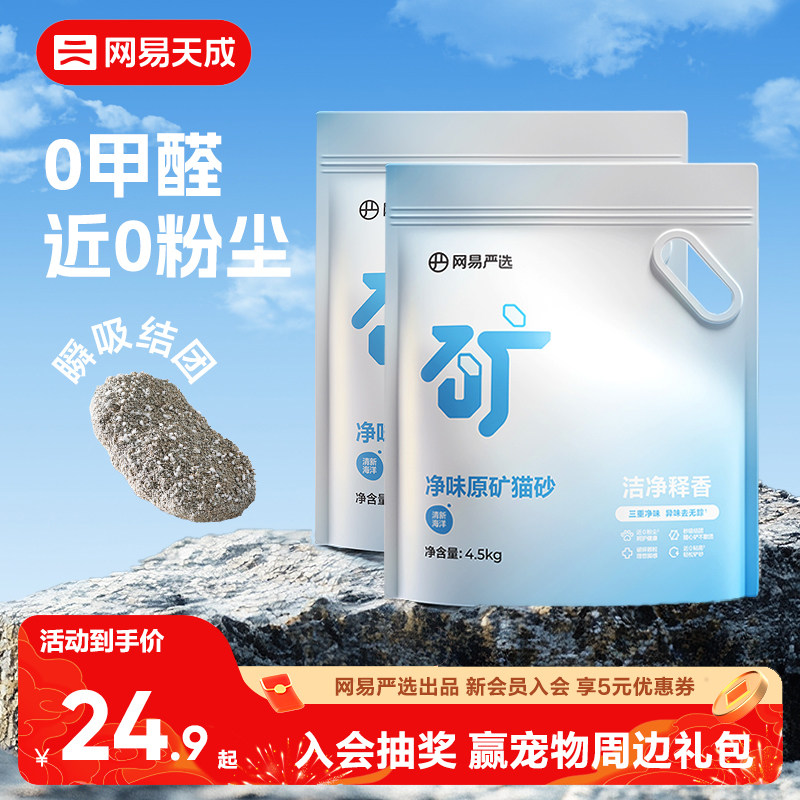 【新品】网易天成严选净味原矿猫砂4.5kg除臭钠基矿石无尘矿砂