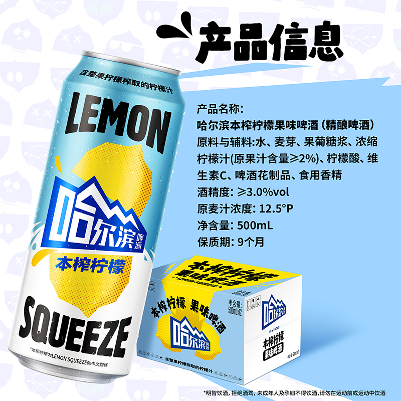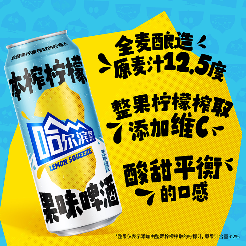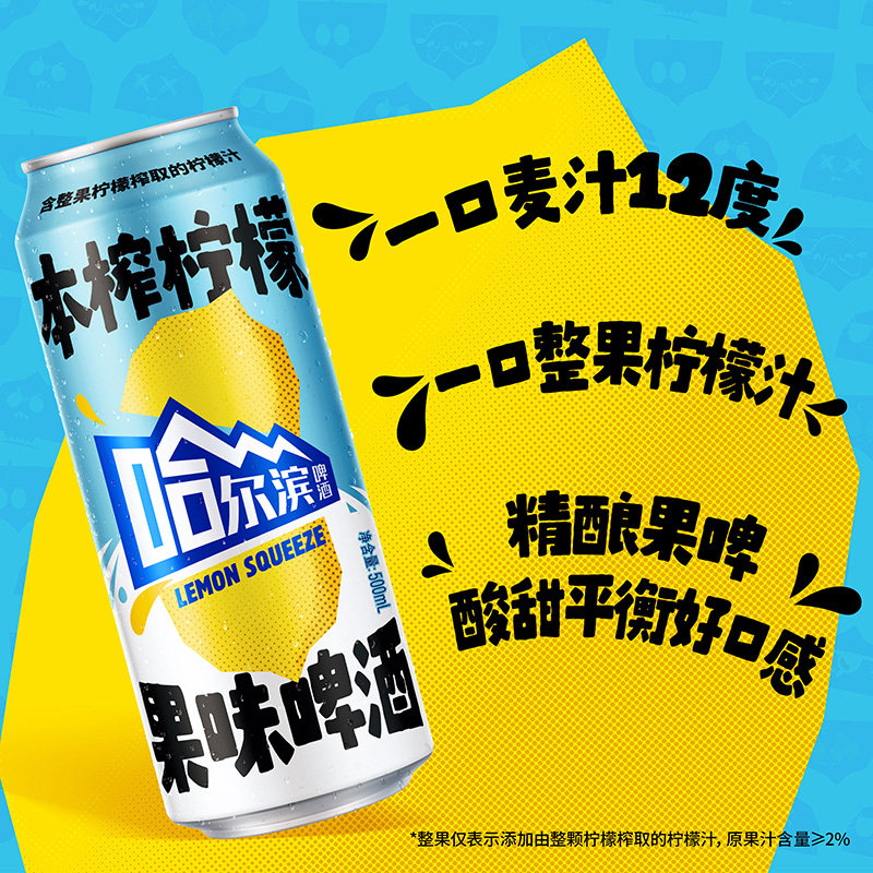 【王鹤棣推荐】哈尔滨果味啤酒本榨柠檬500ml*12听12.5°P整箱装