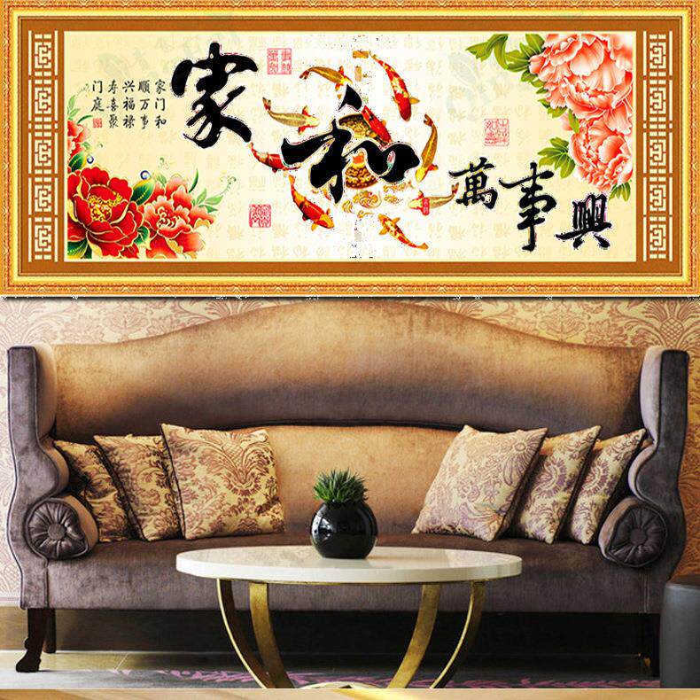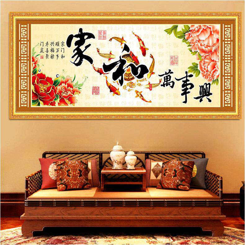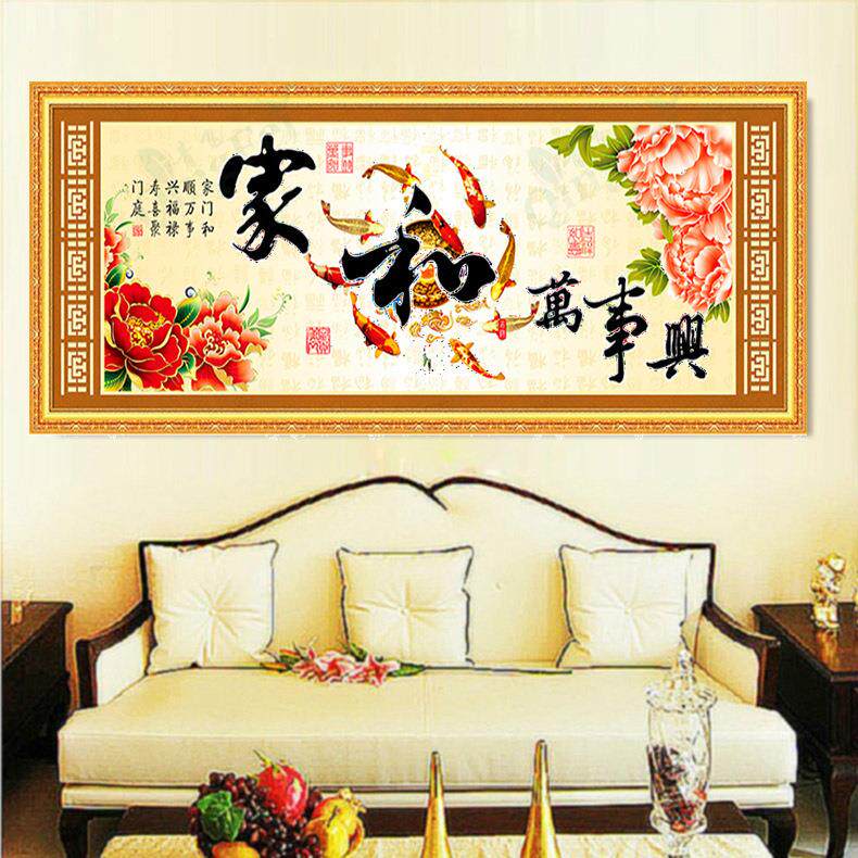 青飞家和万事兴十字绣牡丹九鱼十字绣家兴富贵花开客厅画