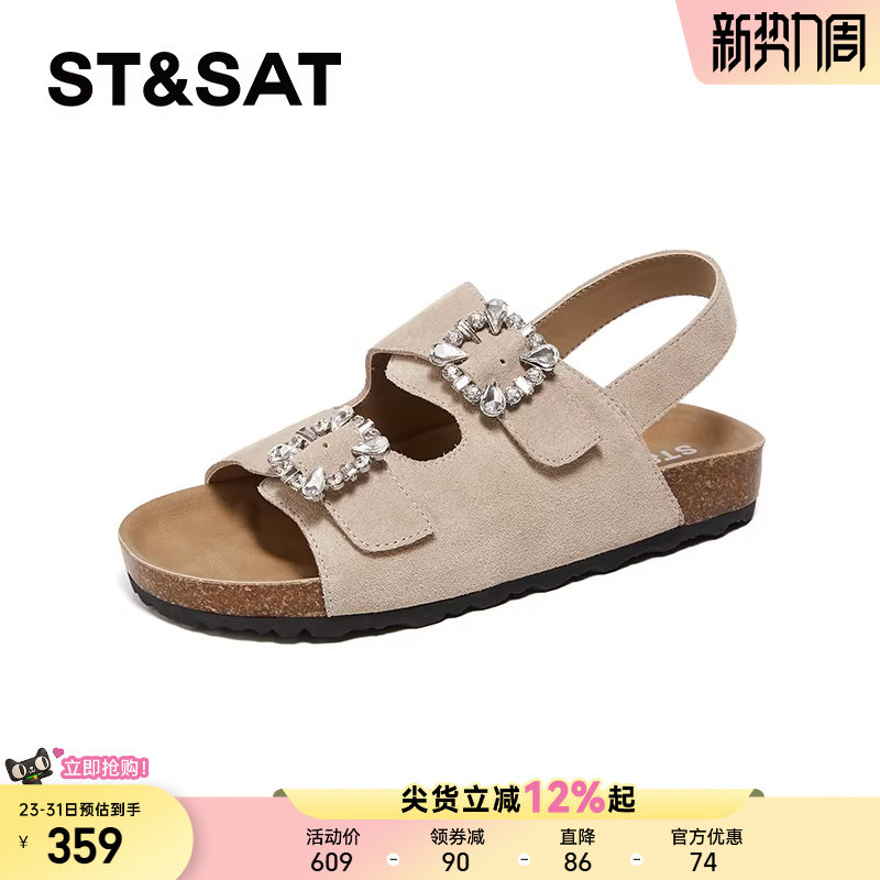 星期六真皮勃肯凉鞋女夏外穿新款百搭平底沙滩鞋复古软底凉拖鞋女