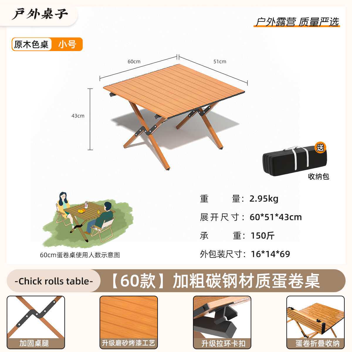 户外折叠桌便携式蛋卷桌野餐桌野炊烧烤露营桌椅一体全套用品装备
