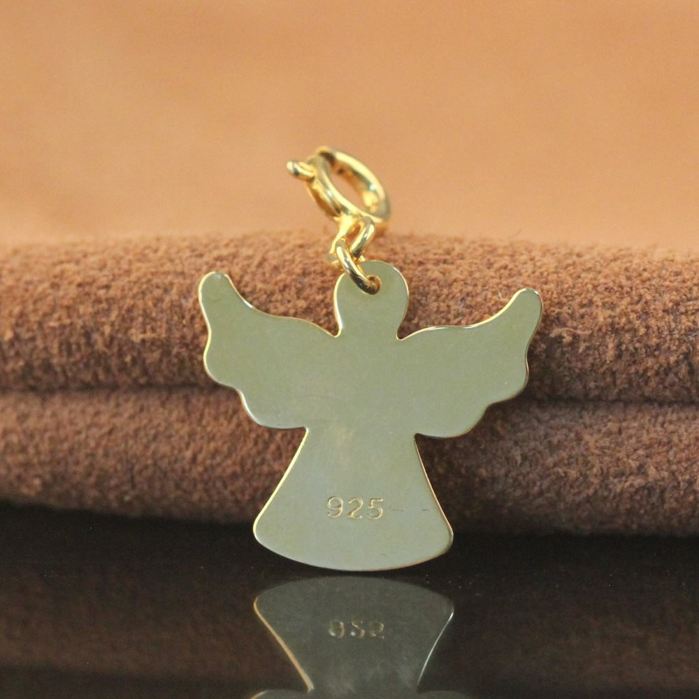 925纯银吊坠天使吊坠带弹簧扣项链挂件银配件项链空白吊牌镀金色