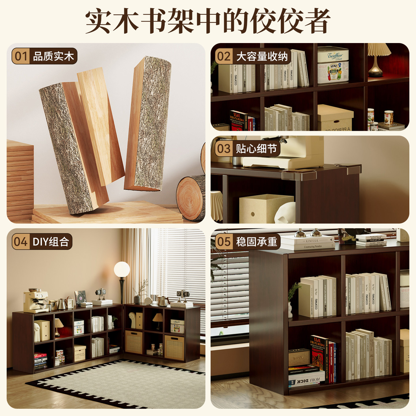 实木置物架落地靠墙收纳架柜书柜客厅储物书架格子柜多层咖啡厨房