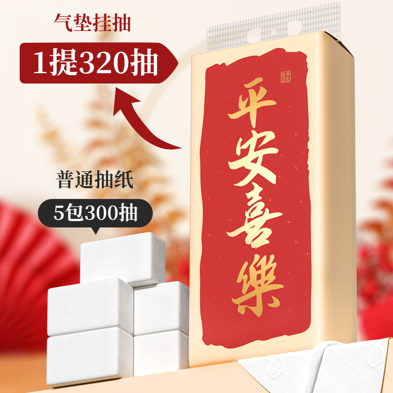 漫花五层320张五层加厚抽纸原生木浆面巾纸柔韧舒适可湿水擦手纸
