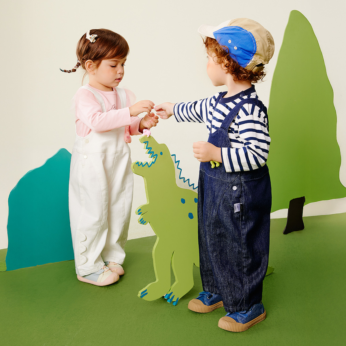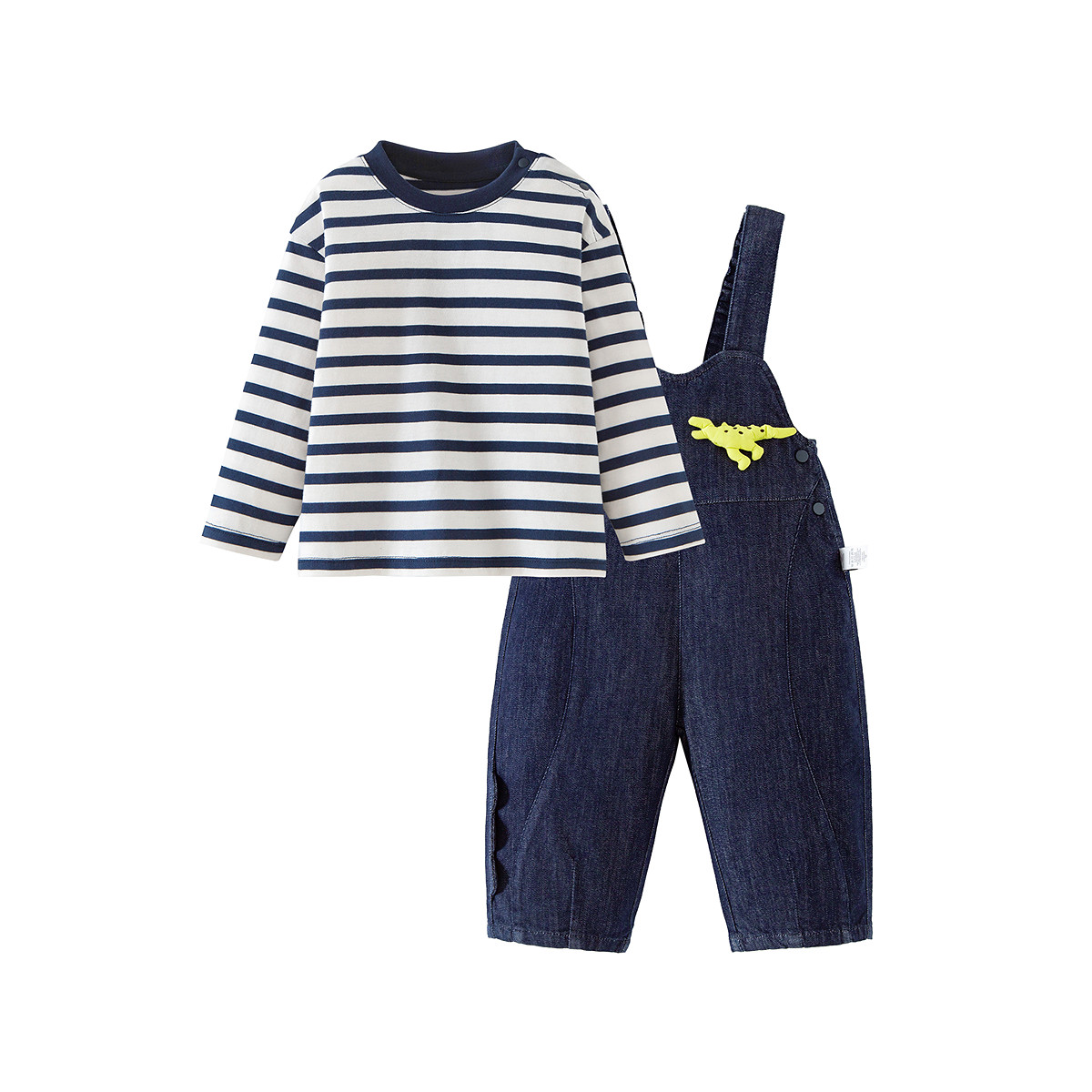 【背带套装】迷你巴拉男女童背带裤套装长袖纯棉T恤软牛仔两件套