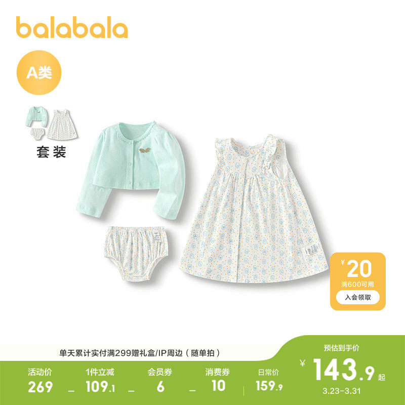 巴拉巴拉童装儿童套装女童裙子三件套夏装2026休闲甜美萌时尚百搭