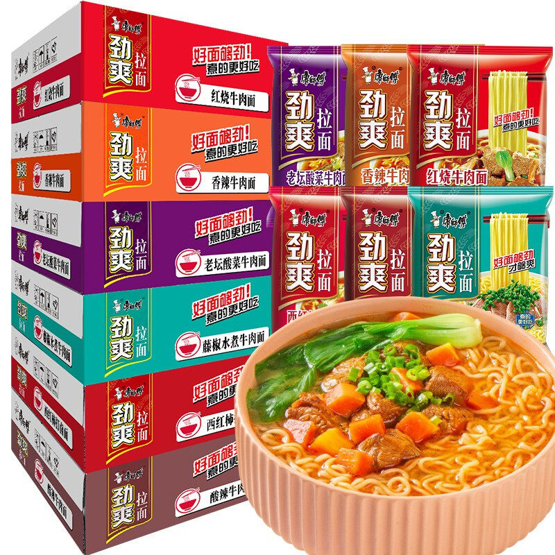 康师傅方便面整箱22袋劲爽拉面红烧牛肉老坛酸菜牛肉面香辣袋装
