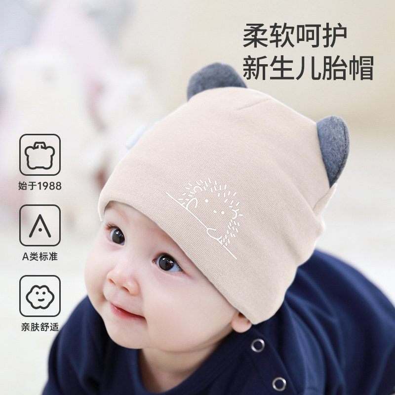 婴儿帽子宝宝男女a类纯棉入秋冬小月龄新生幼儿6到12个月胎帽外出
