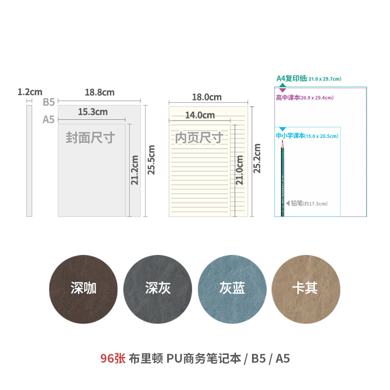 道林硬面商务本宽行距横线96张莫兰迪PU皮纹简约个性创意商务会议记录学生考研复习笔记本子80克米黄纸可定制