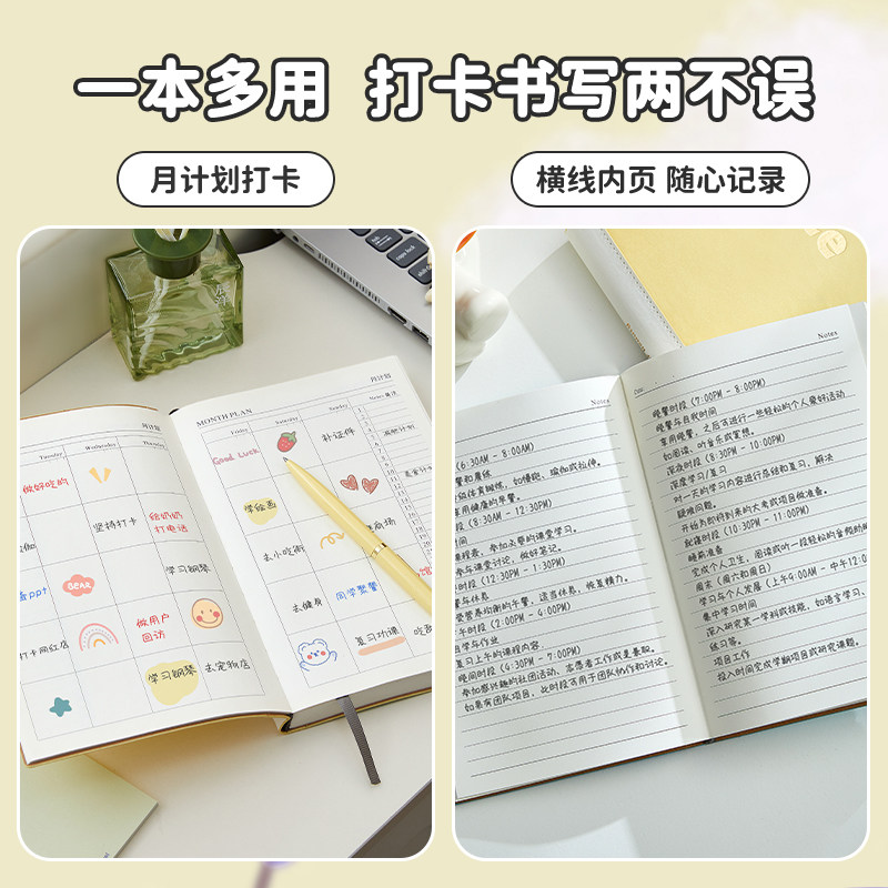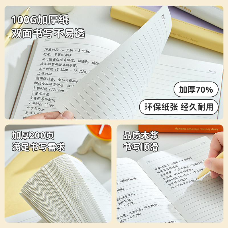 晨光笔记本子 B5米黄横线内页笔记本作业登记本缝线本子A5小学生笔记刷题便携简约可爱记事本