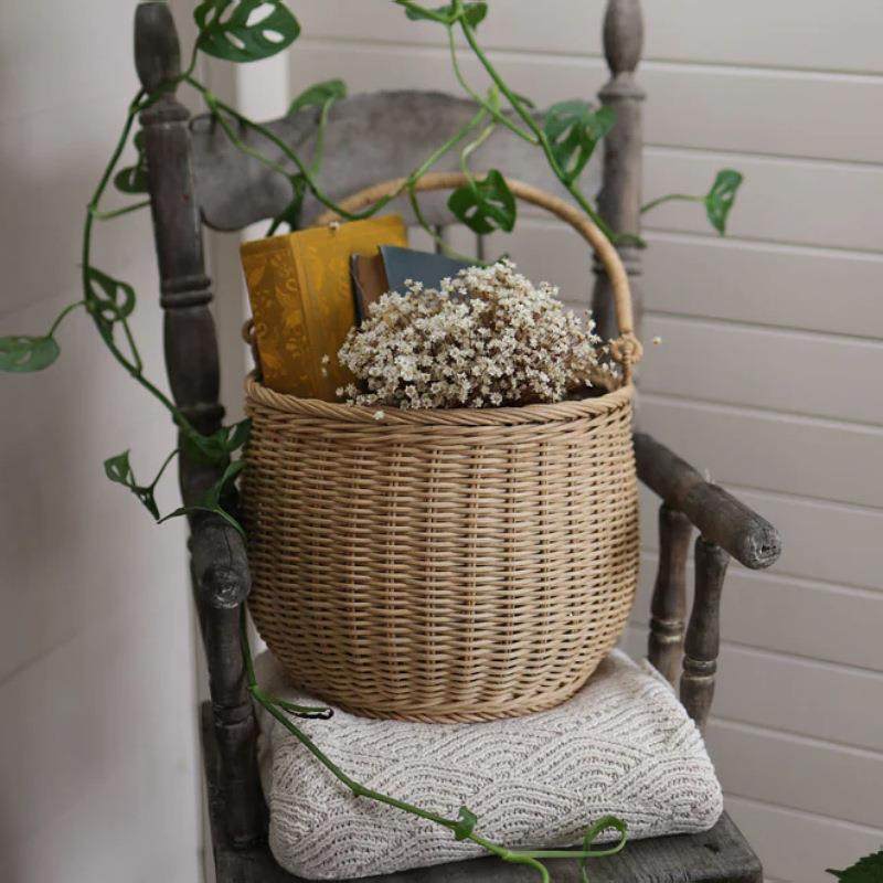 手提收纳仿藤编织篮户外野餐水果篮插花手提篮儿童采摘花篮