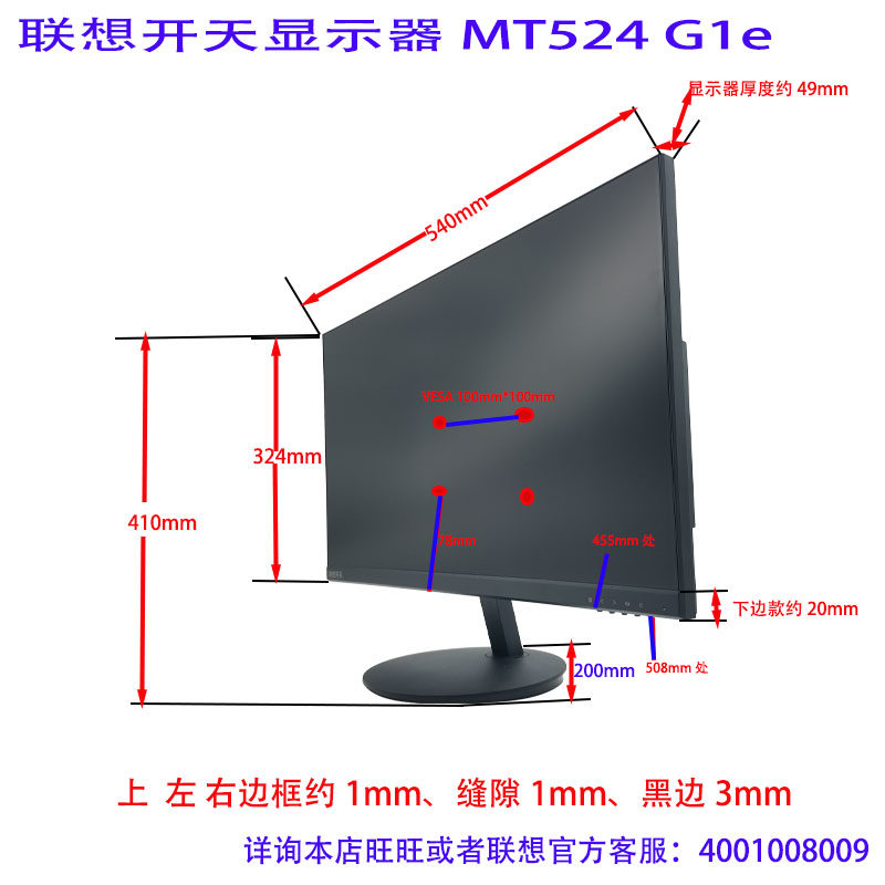 联想开天MT524 G1e液晶屏显示器23.8寸VGA+HDMI窄边框全新联保