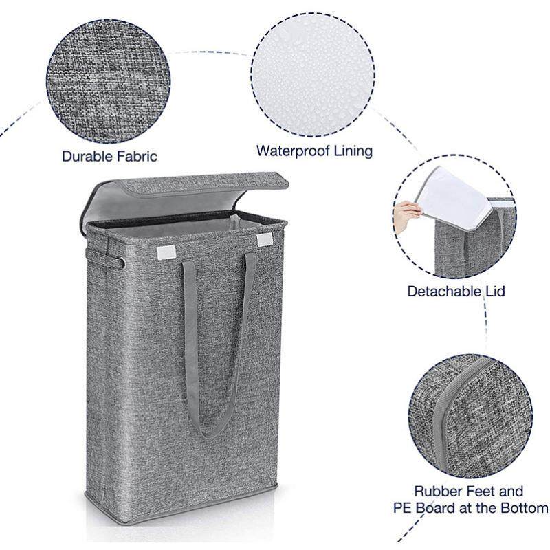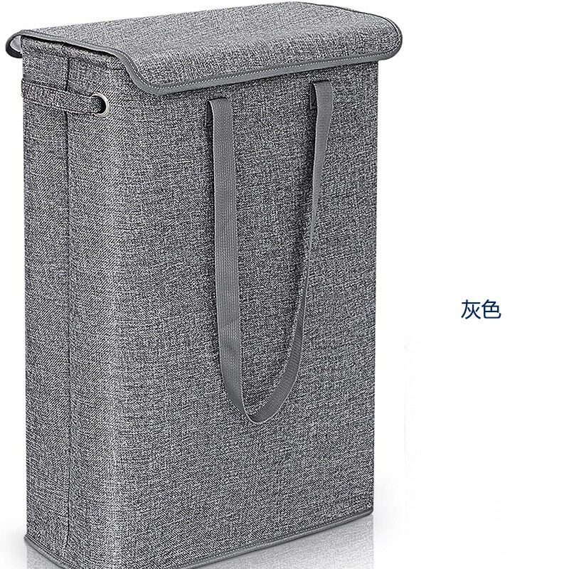 夹缝带盖棉麻洗衣篮窄条脏衣篓窄缝可折叠办公手提卧室办工收纳筐