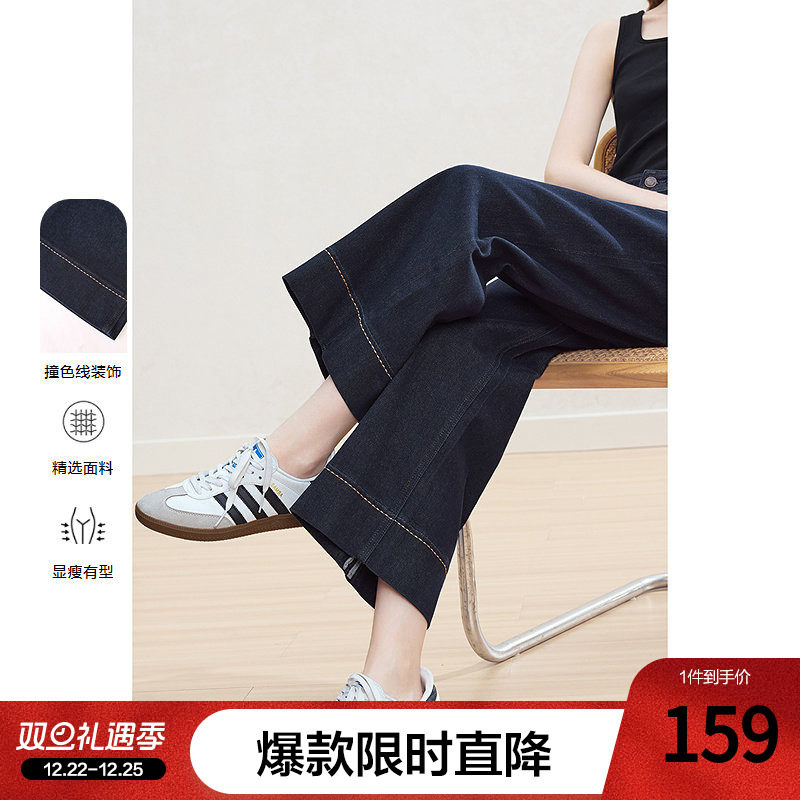 四面弹丹宁色牛仔阔腿裤25年新款宽松显瘦牛仔长裤89173