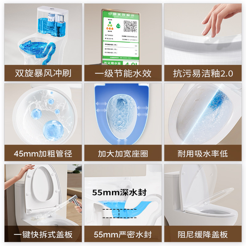 九牧卫浴陶瓷马桶虹吸式抽水马桶节水家用连体式普通坐便器11264