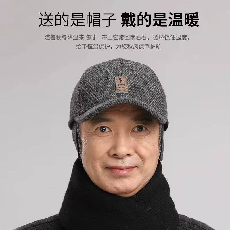 帽子男款2025新款冬季加厚防寒送爸爸护耳中老年鸭舌帽保暖棒球帽