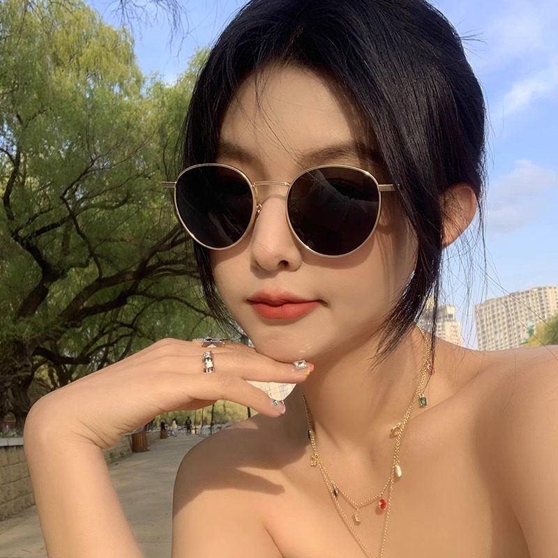 刘仁娜同款墨镜女款2025新款复古圆形高级感小脸金属小框太阳眼镜