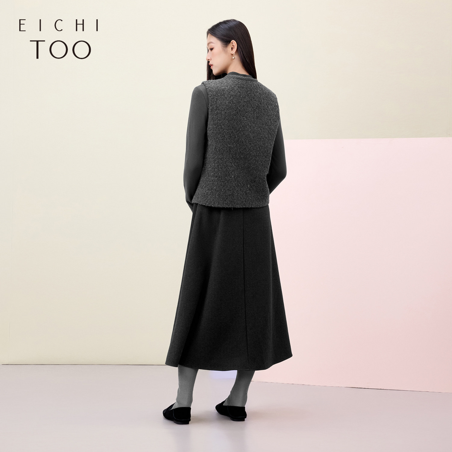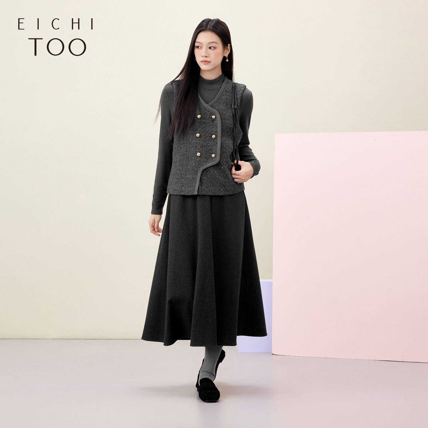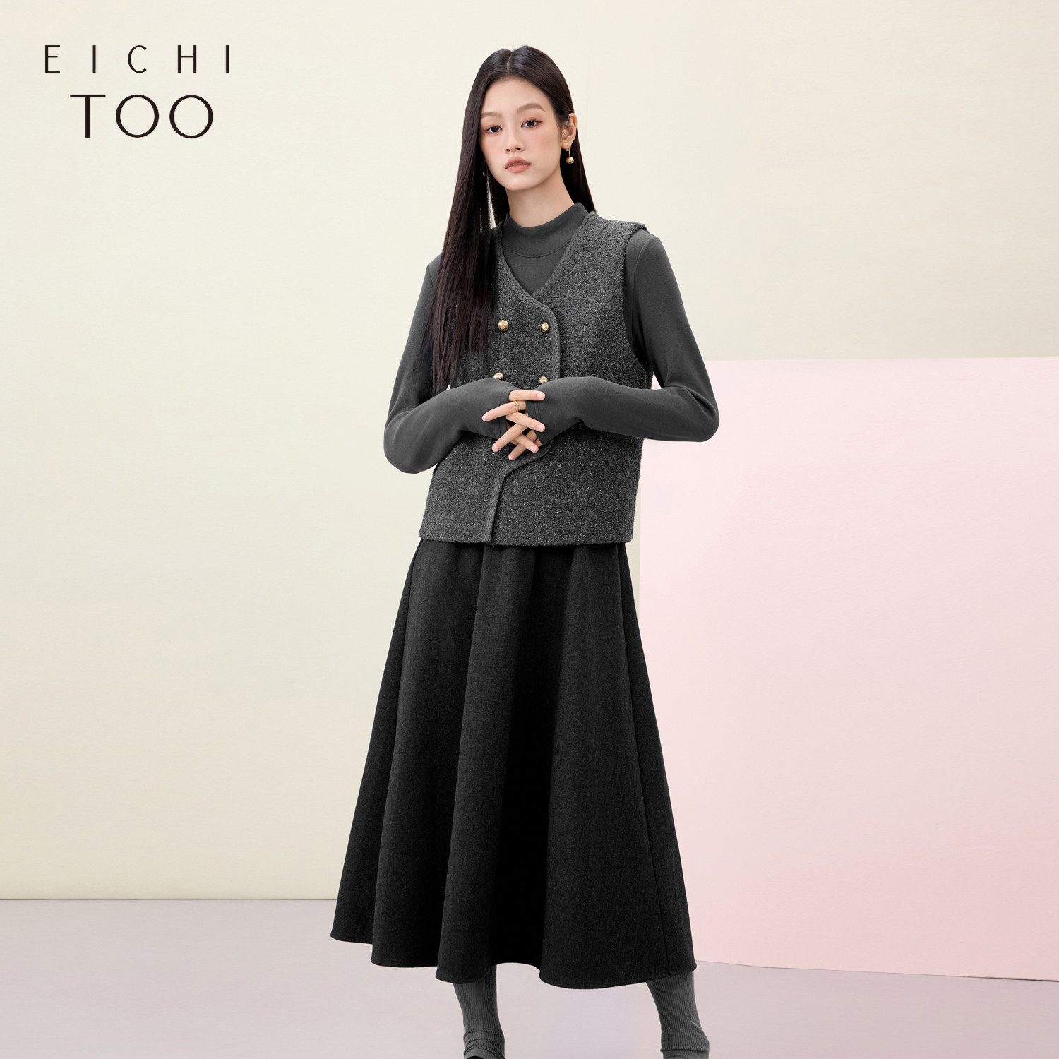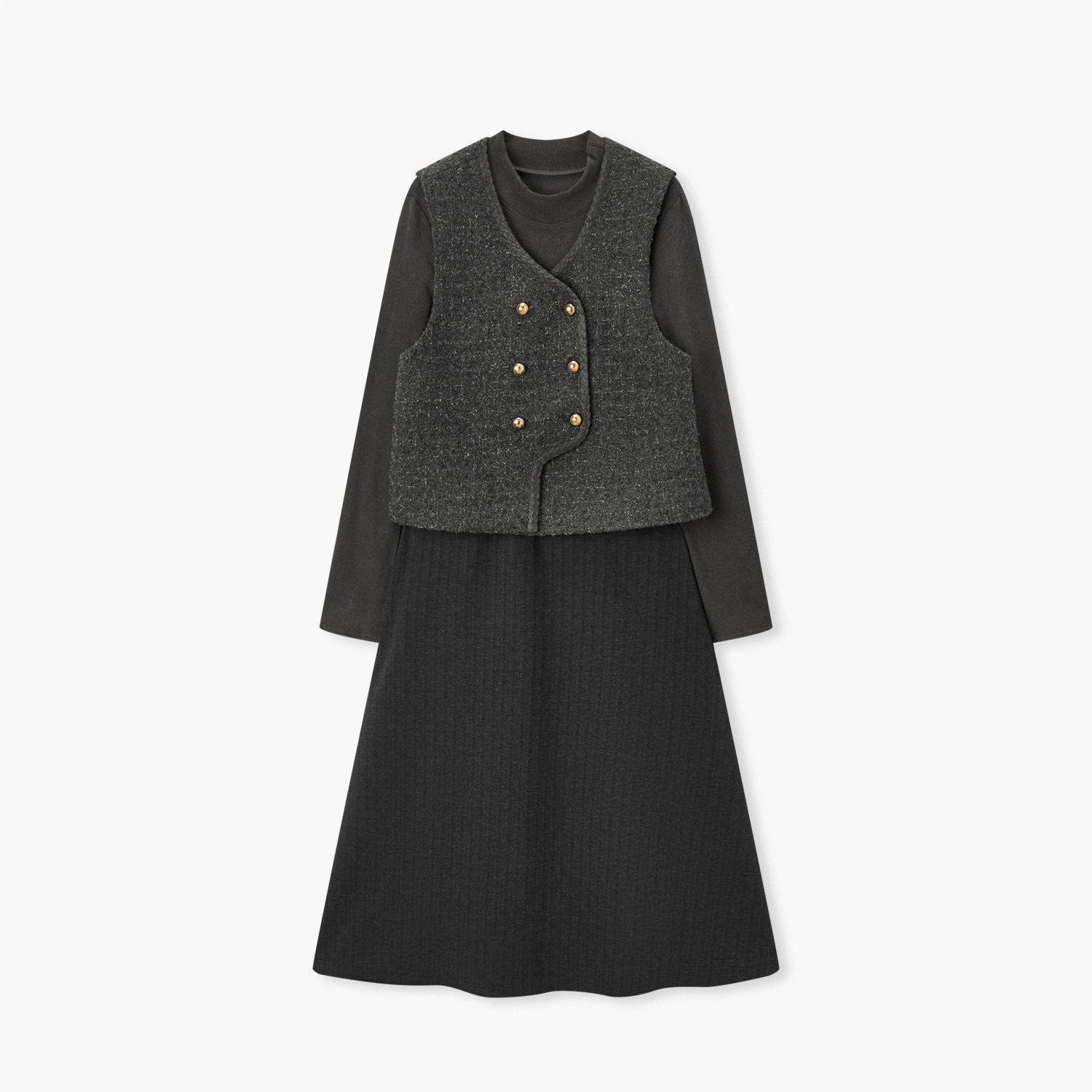 爱居兔高级灰套装裙女冬季新款小香风两件式连衣裙