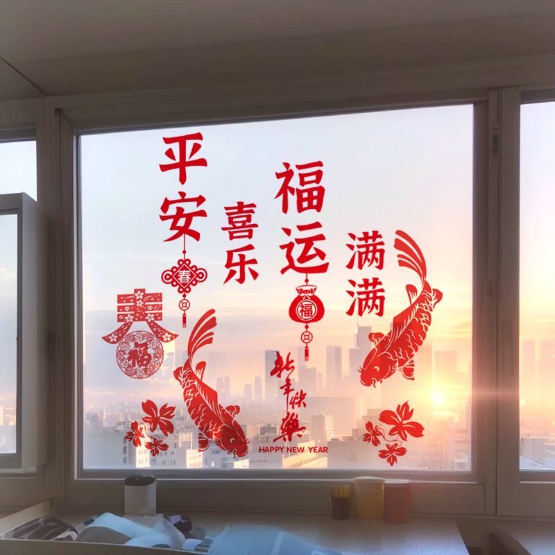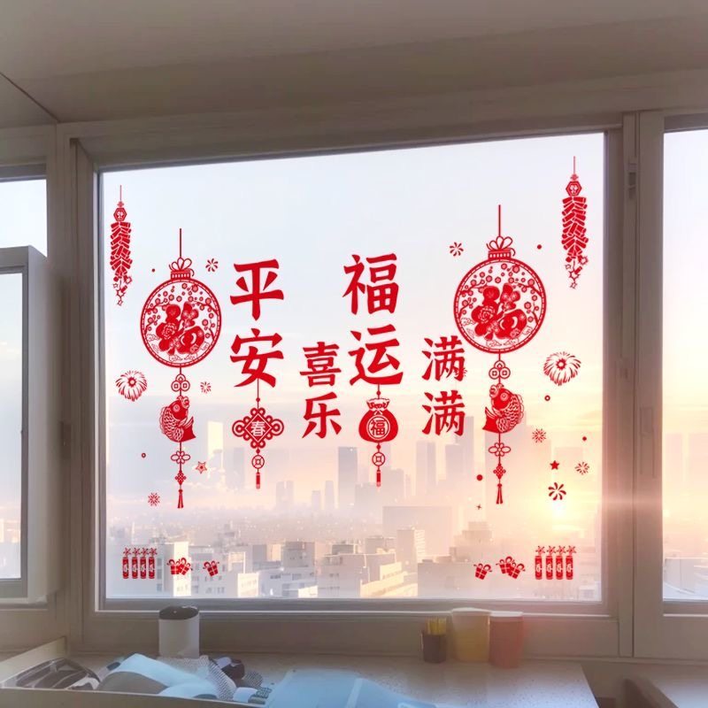 2026新年客厅玻璃门贴纸过年装饰窗花马年春节布置店铺橱窗墙贴画
