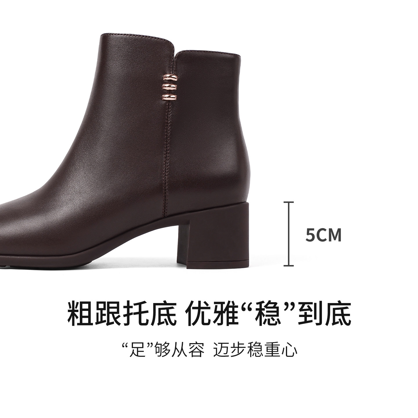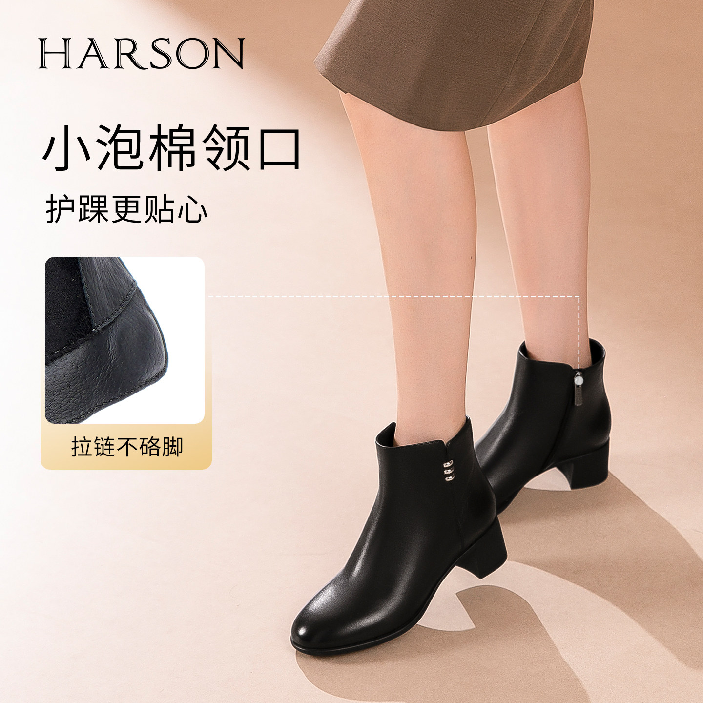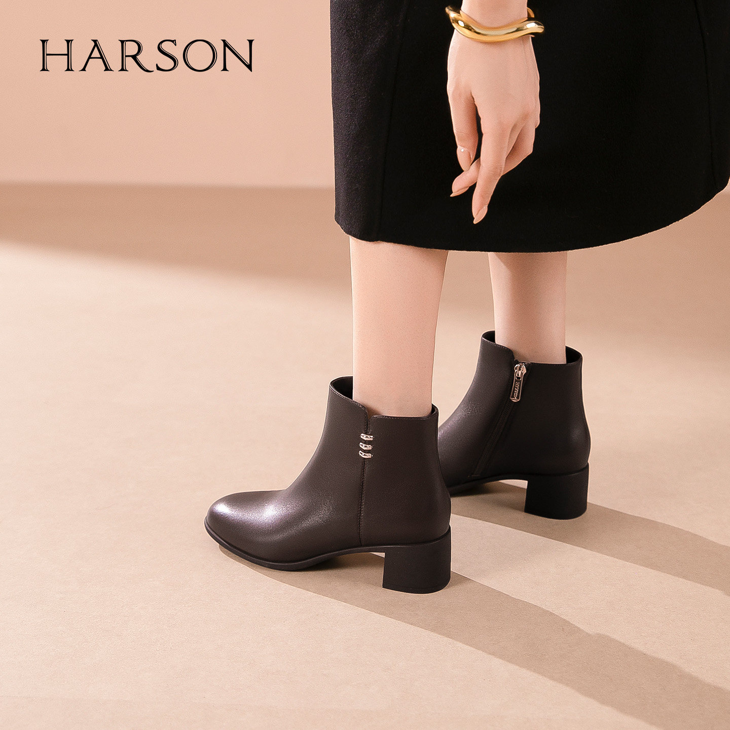 哈森/HARSON【小金豆】25秋冬新款小羊皮粗跟时尚短靴时装靴女