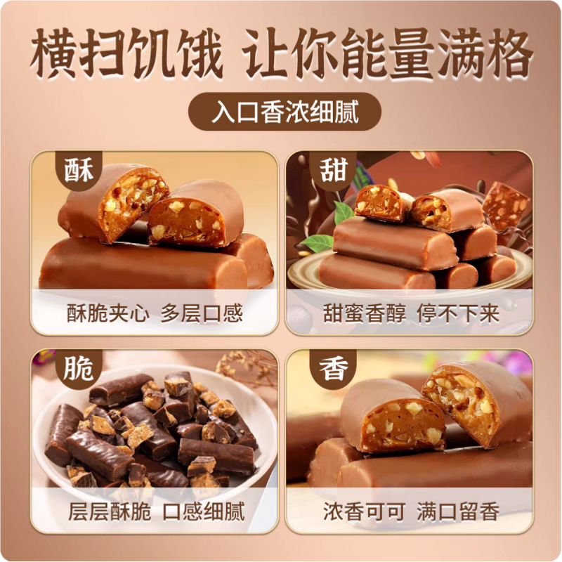 坚果花生夹心巧克力能量棒充饥巧克力糖喜糖年货代可可脂袋装果仁