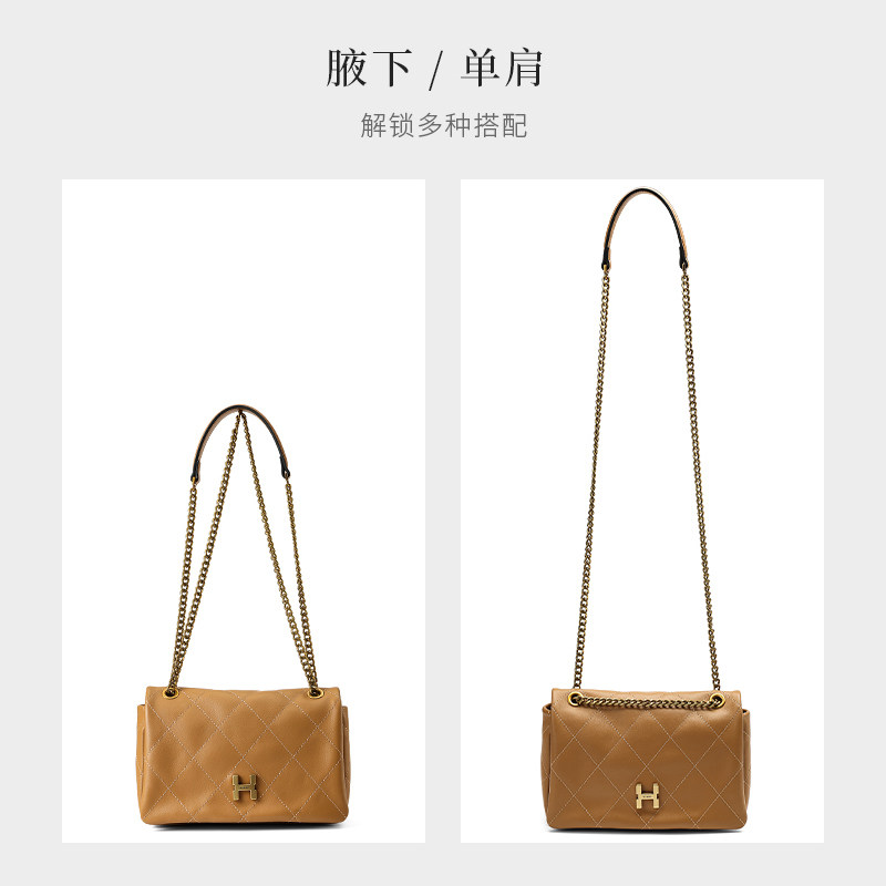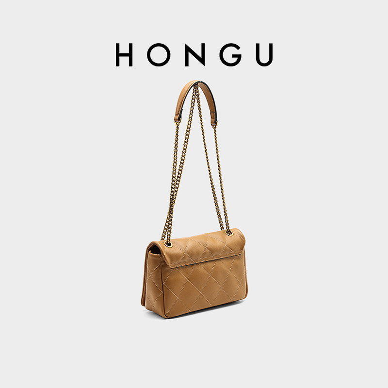 红谷包包新款通勤真皮单肩斜挎包菱格链条腋下包百搭小方包女式包
