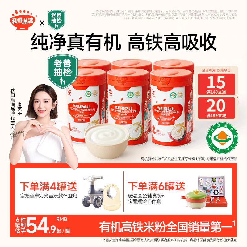 秋田满满有机米粉婴幼儿营养米粉宝宝辅食米粉婴儿米糊6个月4罐装
