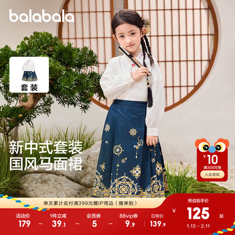 巴拉巴拉女童马面裙儿童汉服唐装春秋装2025新国风公主套装两件套