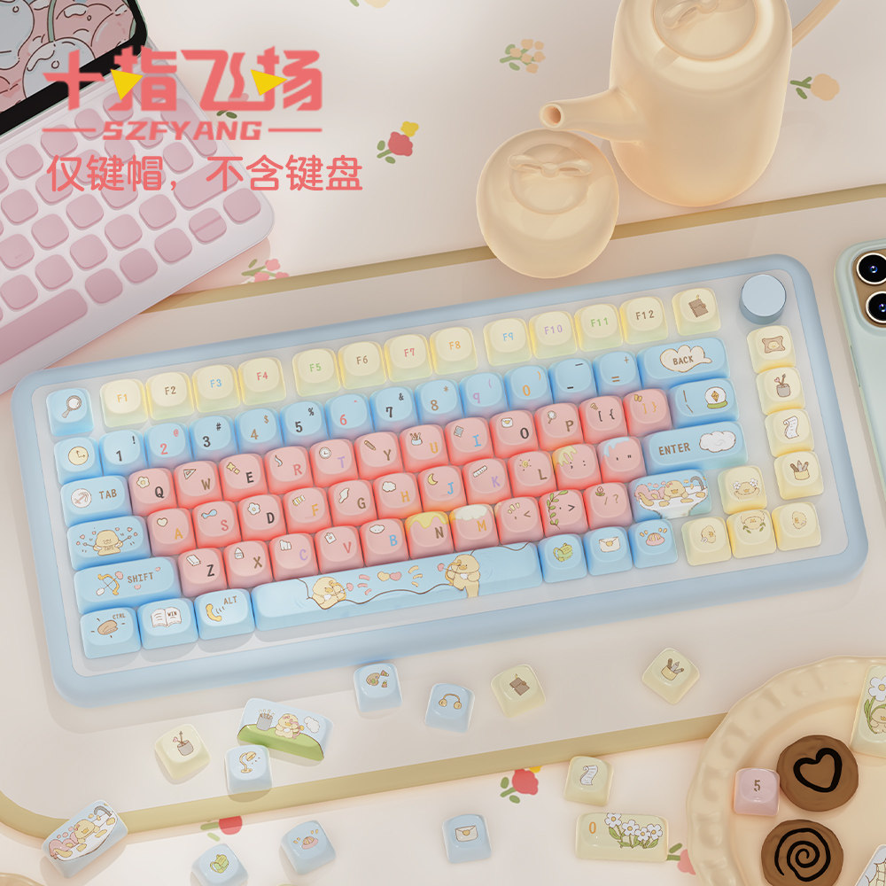 甜蜜棉花糖 原创键帽pbt全五面热升华类moa高度可爱适配机械键盘