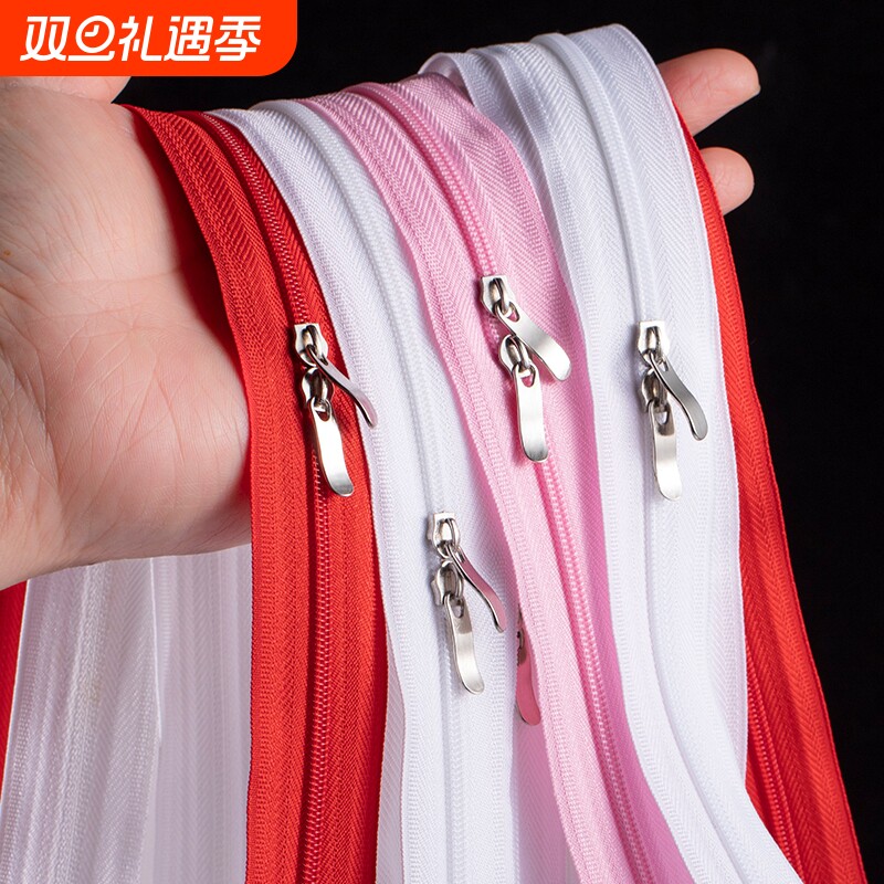被套拉链长款家用双头被罩被子专用1.5米加厚拉锁拉链头配件红色