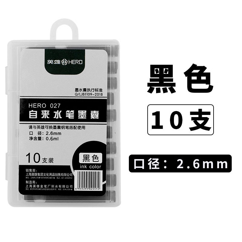 墨囊2.6口径英雄英雄墨囊027钢笔墨囊一次性墨水黑色蓝色蓝黑色