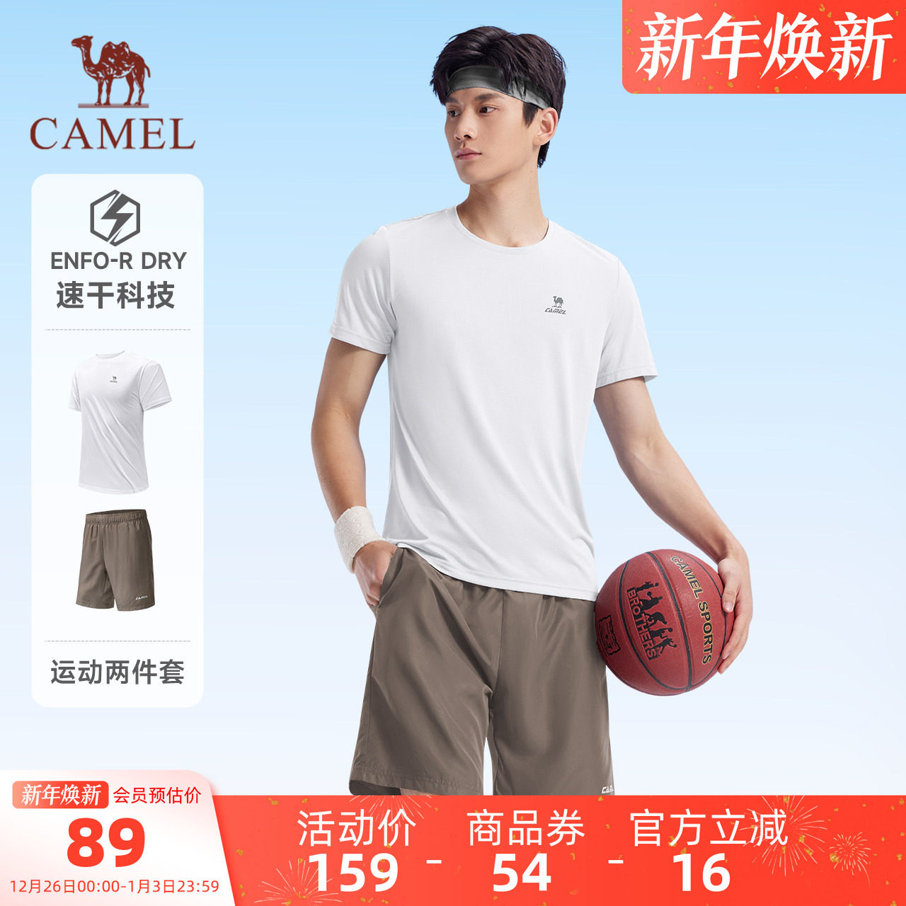 骆驼运动速干套装男士夏季薄款透气T恤短袖短裤健身跑步两件套女