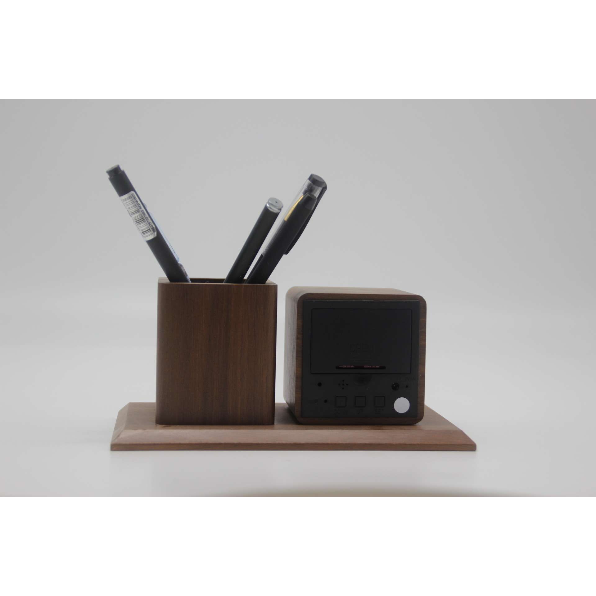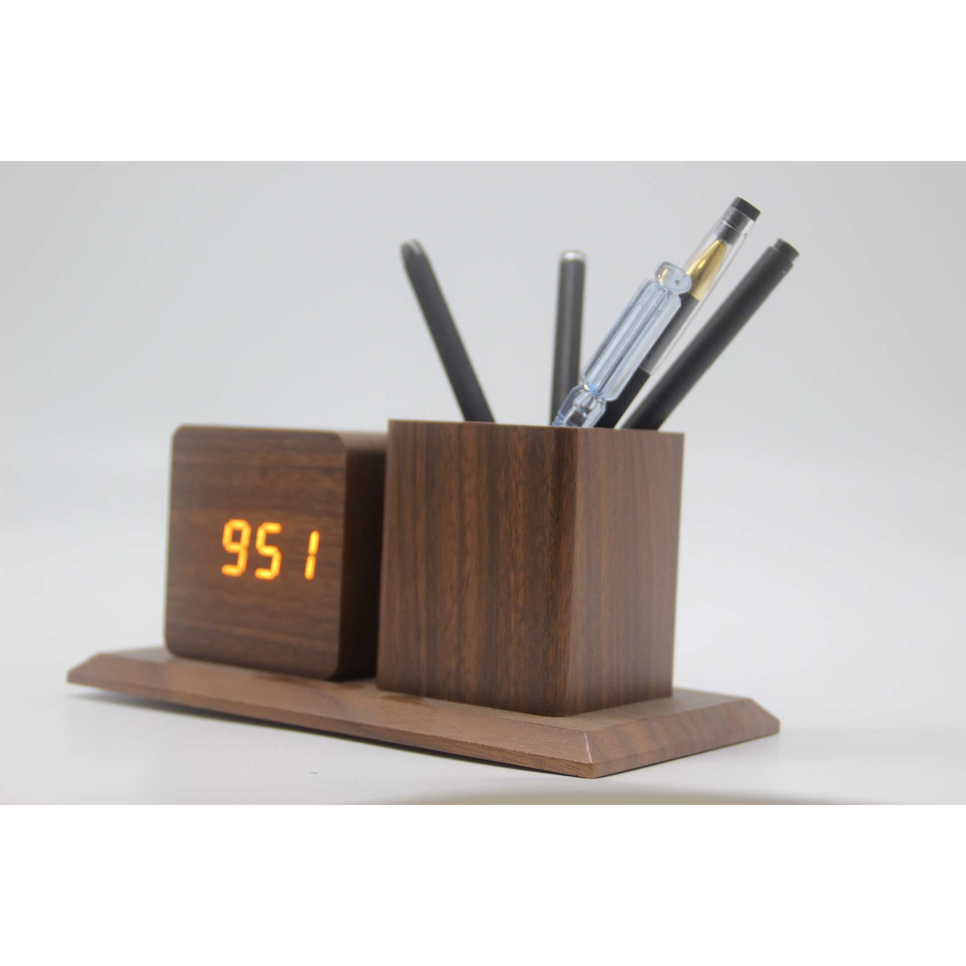 时尚led木头笔筒闹钟学生数字静音时钟木质迷你led台钟 石英钟