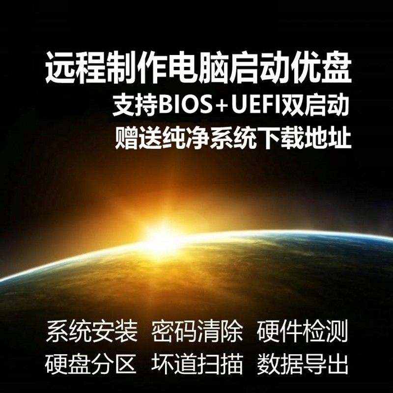 远程制做PE系统启动U盘安装系统密码清除数据恢复备份硬盘分区