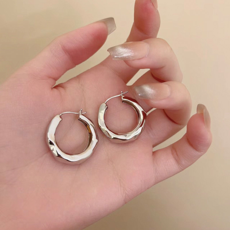 银色素圈耳环女夸张大耳圈2025新款爆款高级感圈圈耳饰耳圈耳夹