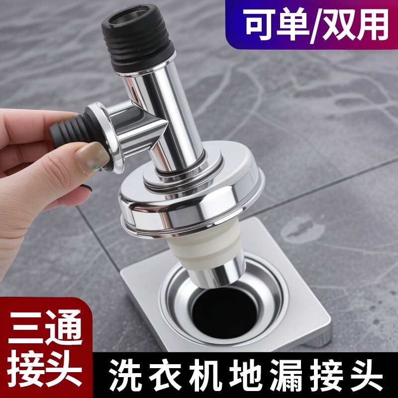 洗衣机下水管三头通地漏双排水专用接头排水管道二合一防臭防溢水