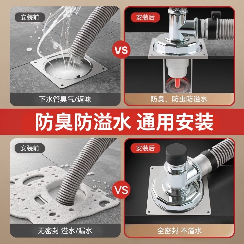洗衣机地漏专用接头下水排水管道防反溢水二合一三通方形地漏盖子