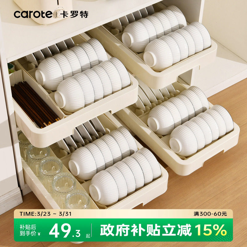 卡罗特可抽拉碗架抽屉内置拉篮筷勺碗盘沥水架厨房橱柜碗碟收纳架