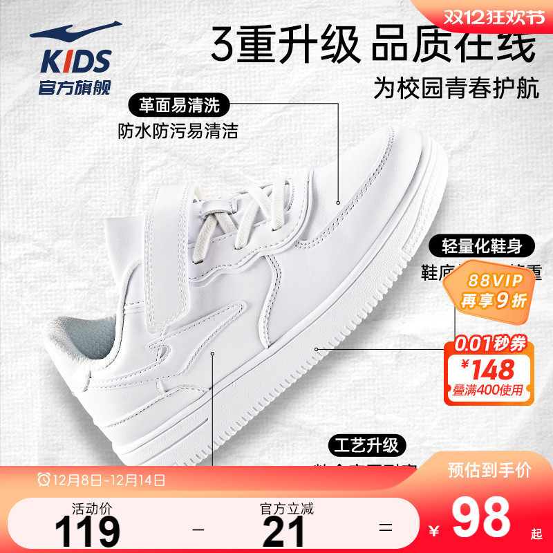 鸿星尔克童鞋儿童板鞋男童小白鞋秋季休闲运动鞋透气女童白色鞋子