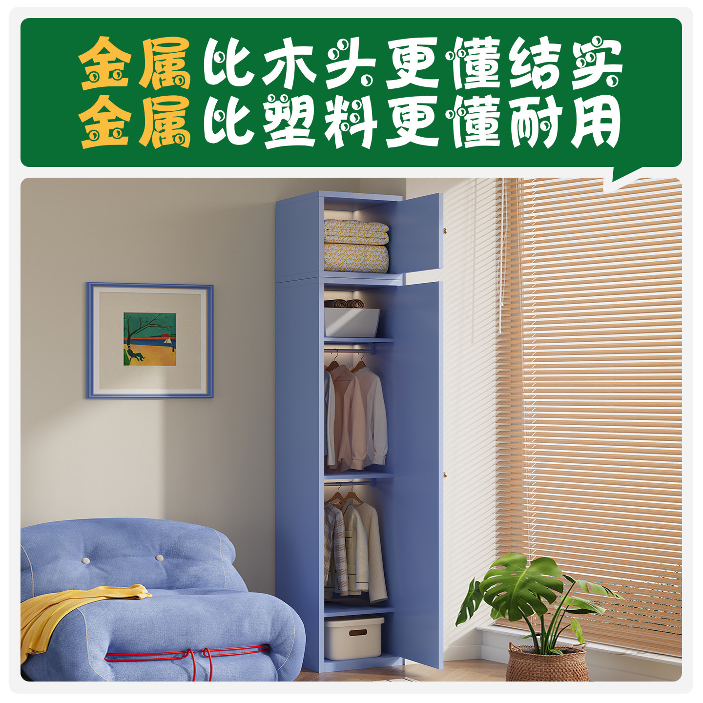 1.8米高单门衣柜超窄家用卧室小户型儿童无甲醛铁皮衣橱夹缝柜子
