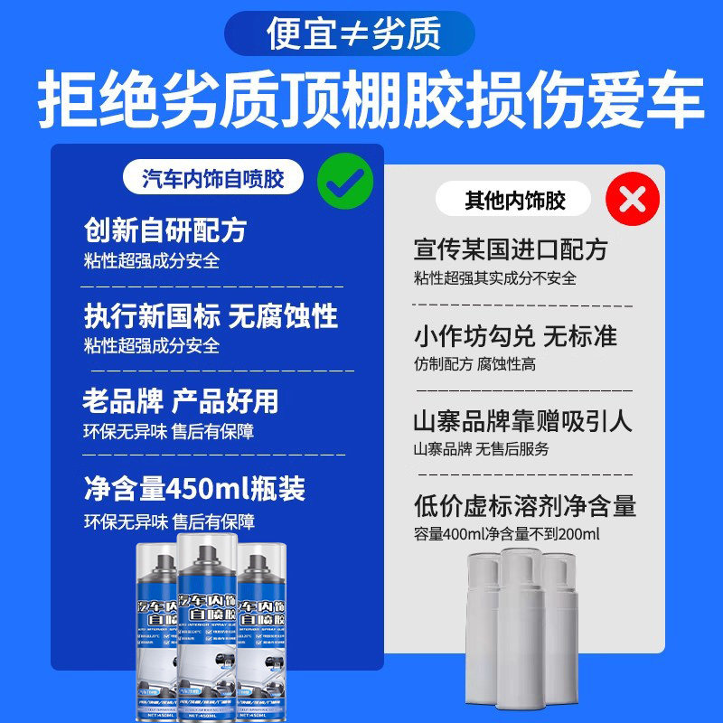 汽车内饰顶棚布脱落修复胶水免拆车顶布专用自粘喷胶翻新改装神器